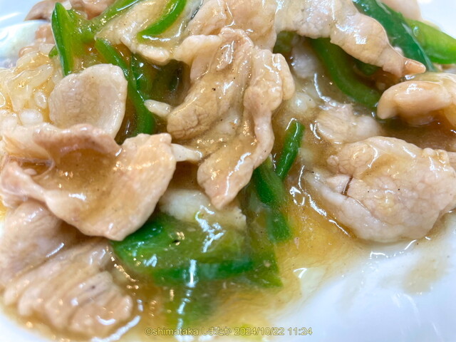 豚肉ピーマンかけご飯 名のとおり下にごはんが敷き詰められている