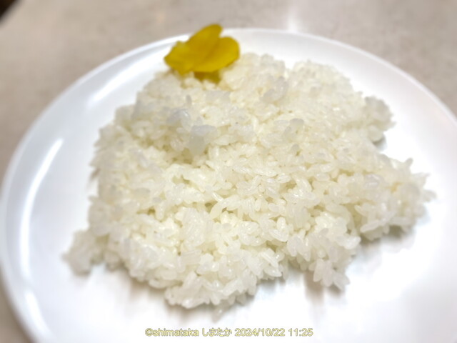ライス 平皿に盛られてきます マスターが「カウンターからごめん。ご飯とってくれる?」と渡してくれた。
