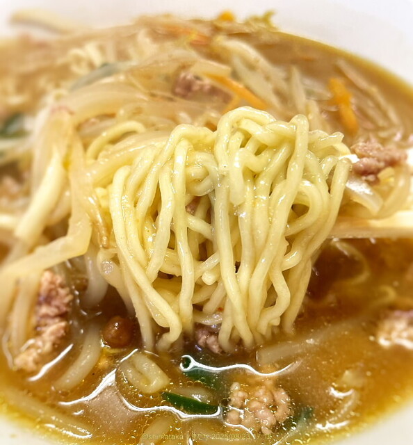 【みそラーメン】 そぼろ肉の塩梅が絶妙。体調管理の観点から,麺もののスープは飲まないしまたかですが,この日のスープは五臓六腑にドはまりで,半分以上飲んじゃいました。