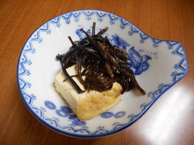今日は、「瓦そば」と「うなめし」の他に、お薦めメニューの「ふぐ皮サラダ」を注文しました。