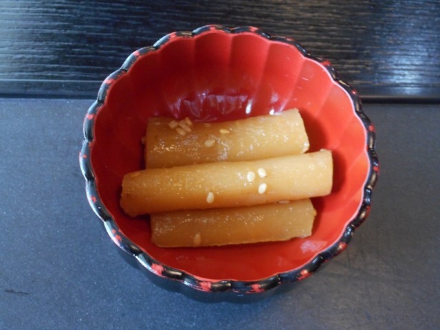 湯引きして冷水にさらし、細切りにされたトラフグの皮は、臭みもなく、コリコリとした食感が、シャキシャキの野菜とマッチして、想像以上に美味しくいただくことができました。