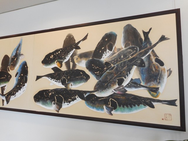 敷地内の体育館のような建物の中には巨大な生簀が設置されていて、一年を通して新鮮なトラフグを賞味することができます。
