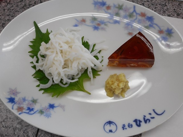 添えられたフグ皮と身皮も、部位ごとに茹で時間を変えるという、こだわりの技巧です。