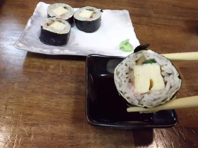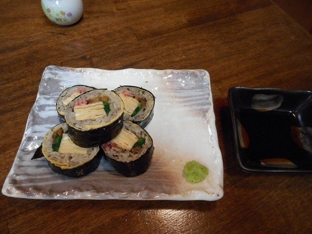 可愛いルックスの蕎麦寿司も、この地域では珍しく、目と舌で美味しくいただくことができました。○○○で食べた蕎麦寿司よりもこちらの方が美味しかったです。この繊細な仕事は奥様も一役買っているのかもしれません(私の勝手な想像ですので違ってたらご容赦を)♪d('∀'o)。