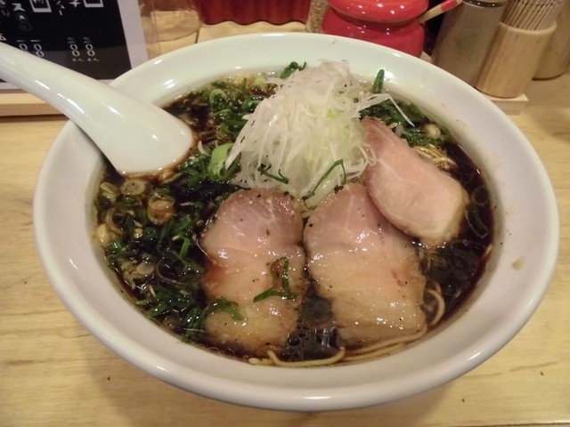 久しぶりにブラックらーめんを食べたくなり、大津家さんにお邪魔しました。麺はデフォルトの中太麺ではなく、細麺を選択、これまでは、こってり背脂を選択していたのですが、今回は初めてあっさりネギ油を選び、ねぎを追加トッピングした、「ブラックねぎらーめん700円」です。