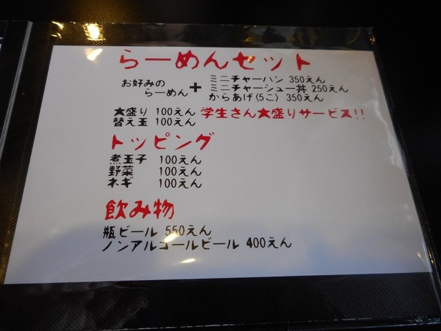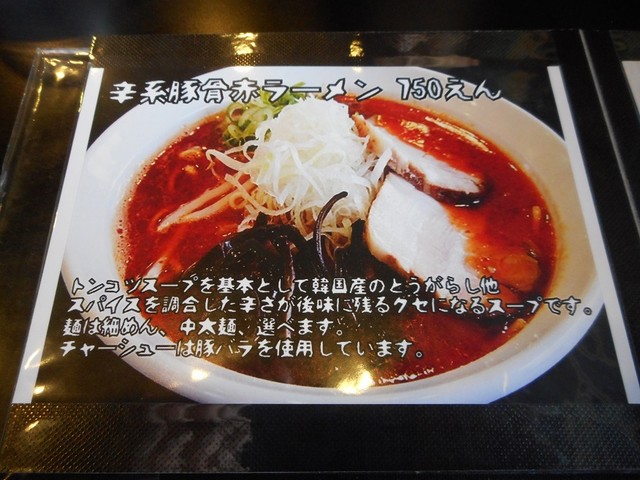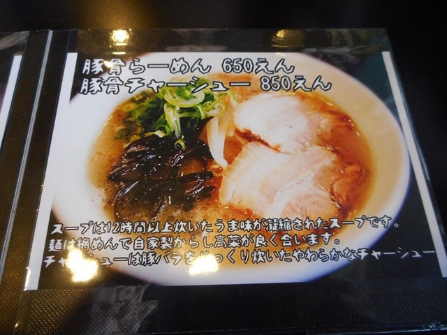 メニューに豚骨ラーメンが新登場していました。やはり豚骨ラーメン文化圏の下関では、ブラックらーめん一本でやっていくのは厳しいのでしょうか?十分美味しいのに・・・