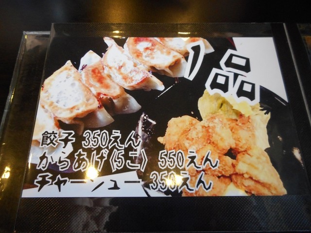 現在、開店3ヶ月目のサービス期間中ということで、餃子3個を無料でいただけました(17:30~夜の部のみ)。さらに11月末まで有効の、大盛りまたはトッピング1品無料券をいただきました。