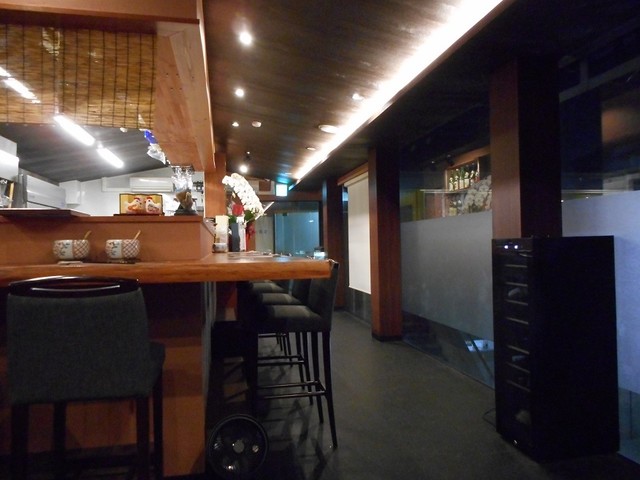 ワンルームの店内は、カウンター席と4人掛けのテーブル席が4卓のみのごじんまりとした造り、外部に面した部分はガラス張りで明るく開放感がある。
