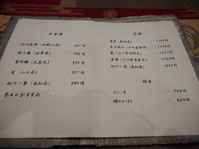 訊けば店主は、今は亡きふぐ料理の名店「なかを」の板場出身とのこと。ならば、次回はフグ料理を賞味しなければなるまい。