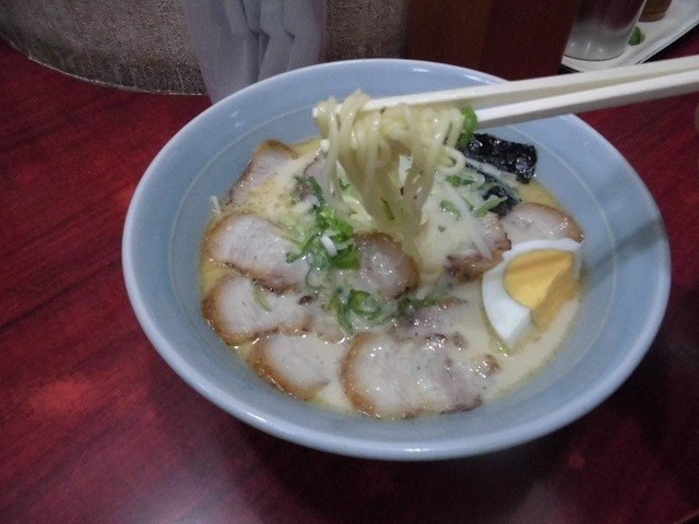 今日は、「チャーシューメン700円」を注文しました。久留米の血を引いているのでしょうか、マイルドでコクのある豚骨スープです。麺は下関に多いもっちりシコシコとした少し太めのストレート麺でスープとよくマッチしています。丼にちりばめられたチャーシューもいい出来で、美味しくいただけます。