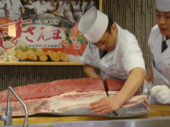 そうこうする内、カウンター越しにまぐろ解体ショーが始まります。