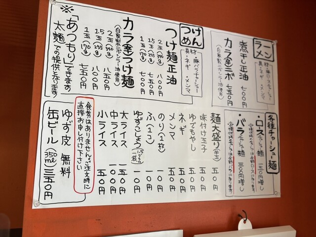 オーダーはカラつけ麺1.5玉