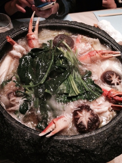お肉、カニ、海老、たっぷりのお野菜をたっぷりのごま油の入った