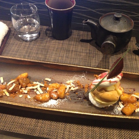 キャラメリぜされたバナナに栗もいました。幸せな一皿です。