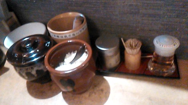 卓上には味変アイテムがいろいろありますね