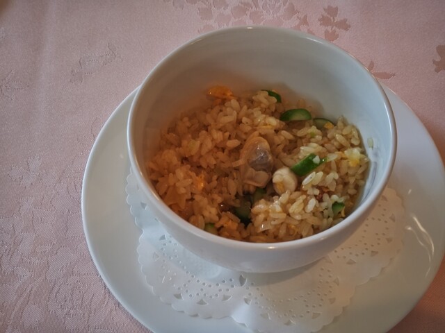 蟹肉入りフカヒレスープ(白い茶碗蒸しと桜海老添え)
