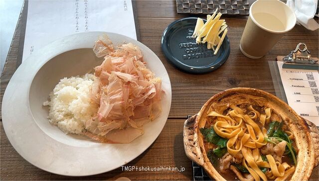 二日前に電話で予約している。席に案内されてメニューを見ると「味噌煮込みうどんとねこまんま」が秋冬メニューで、カレー煮込みもある。(カレー煮込みは前日までに予約が必要)