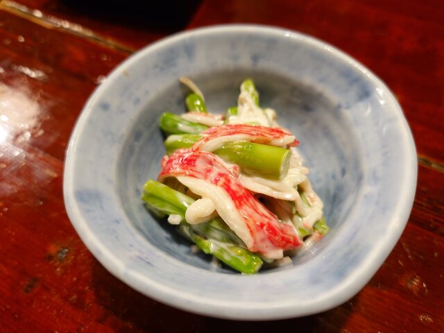 久しぶりに馬刺し1,000円を注文。良い感じに刺しが入っています。これは日本酒なので早速定番の「神渡」を発注します。7年くらい前から浅利社長がほれ込んで仕入れ、宗平の顔とも言えるお酒です。すっきりとした大吟醸でバランスの取れた美味しさ、料理にも合うしお酒だけでも美味しく頂けます。これが一合800円。