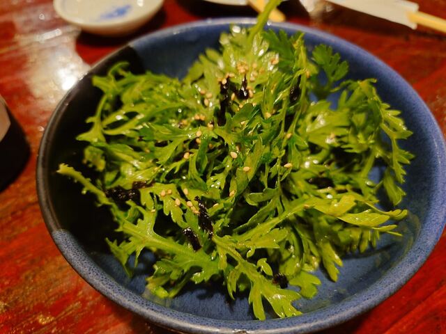 お通し350円(春菊としめじの胡麻和え)