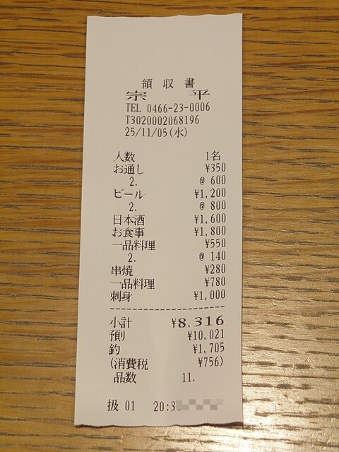 宗平は昼に来ても夜に来ても満足度の高いお店です。