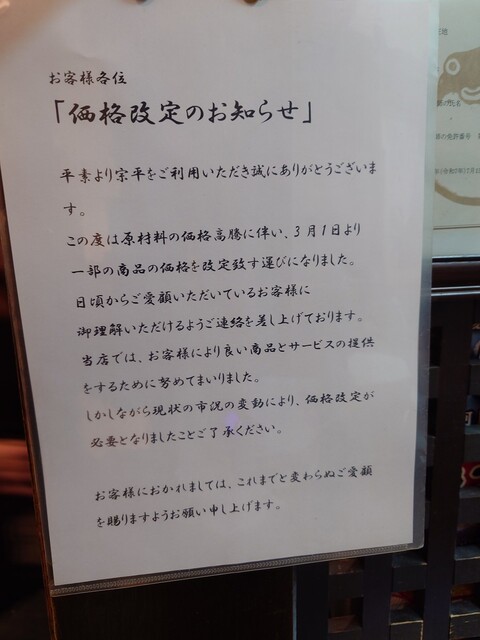 宗平 黒板メニュー