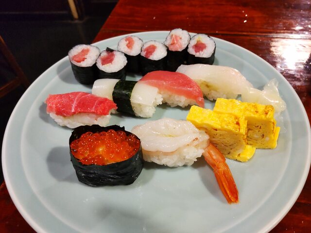 シメは上握り1,600円。下の系列店「宗安」から運ばれてくる寿司店の寿司です。