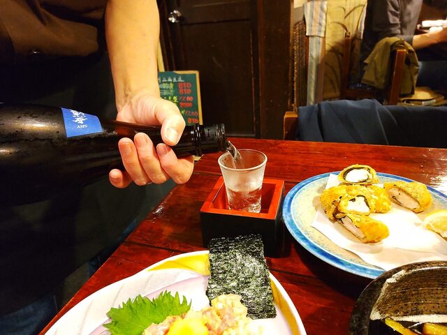 料理メニュー豊富で、特に「五島列島直送のお刺身」「なめろう」や「ささみ梅しそ揚げ」「皿うどん」などがおすすめです。信州諏訪の日本酒「神渡」など厳選された地酒も楽しめます。日本酒はメニューに無いものも多く好みを伝えると複数瓶を見せて説明して頂けて、好みのものを選べます。そして日本酒のお値段が一番高いもので800円!この安心感とコスパが魅力です。