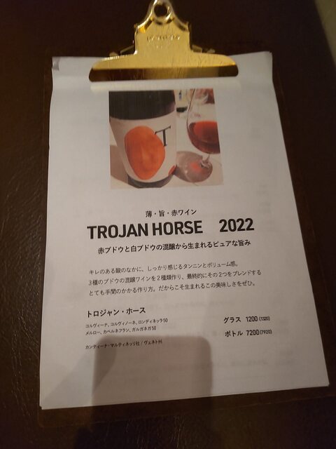 合わせる赤ワインはこの日おすすめのTROJAN HORSE 2022。