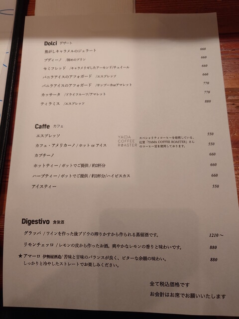 最近はデザートのドリンクはハイボールを頼みます。イタリアンのデザートってハイボールに合う気がするんですよね。