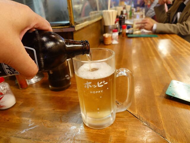 瓶ビールを2本飲んでから、ホッピー550円に変更。