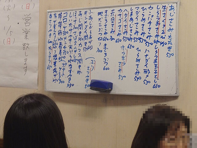 今回も残念ながらイワシさしみと小アジの唐揚げは品切れでした。