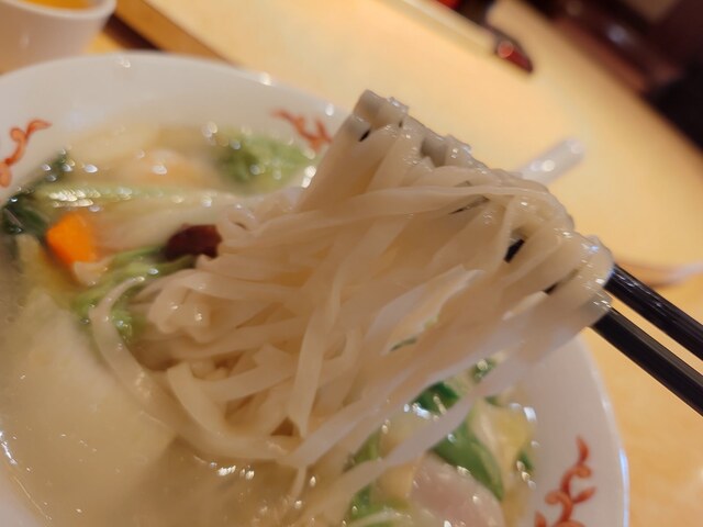 ホタテ、海老、イカと白菜や青菜、にんじんがたっぷり入った塩味のおそば。麺はタンメンと同じ平打ち麺。二日酔いの日はこれしか食べられません。
