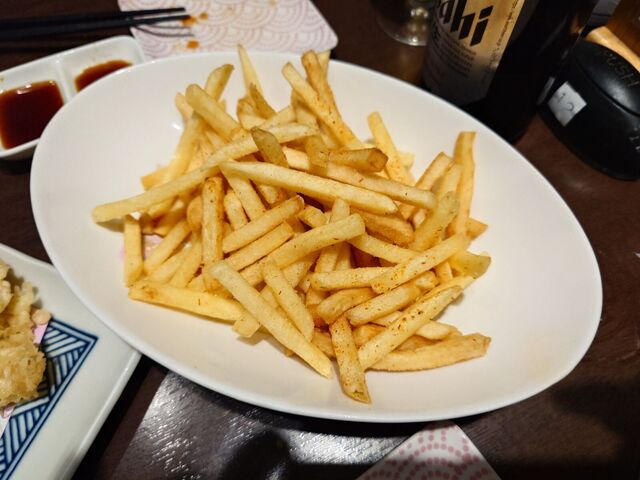 三人で18,100円(1人あたり約6,000円)。この内容、この品質なら文句なしのコストパフォーマンス。唯一惜しいのは、野菜系メニューがサラダ1品とポテトフライ、梅キュウリのみで、お新香もないこと。魚に特化した潔い構成と理解しつつも、ほんの少し緑の一皿が欲しくなる。肉メニューもゼロなので少しでもあると嬉しいところ。