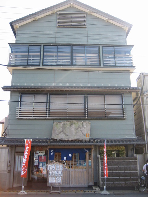 3階建ての一軒屋という外観で建物自体は目立つ存在とは言えないのだが、扉の両脇に「きんめ鯛づけ丼」と書かれた赤いのぼりが立てられており、これが目印になる。