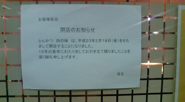 偶然訪れたら、何とこの日(2月18日)で閉店との貼り紙が!