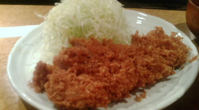 トロかつは、煮込んでホロホロになった角煮のような肉をかつにしたもの。ただソースは濃いデミグラスみたいでかなり重い感じ。もっとも、大量のキャベツをかき込む時の戦力になってくれるので問題ない。