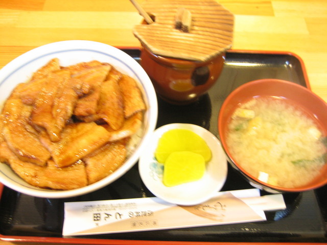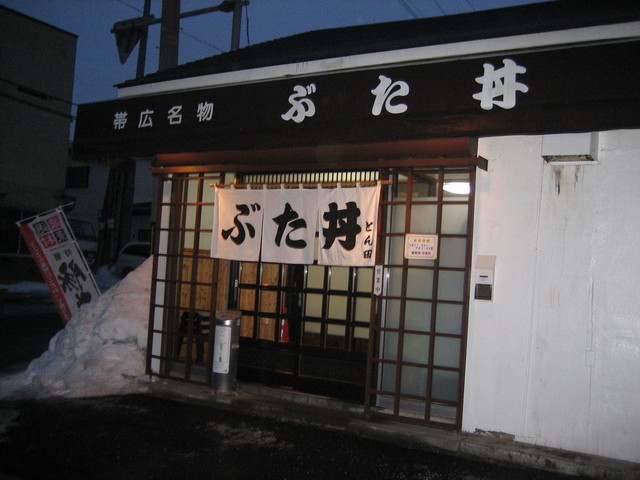 帯広駅から徒歩18分、ショッピングセンター「イーストモールいちまる」近くにある、帯広名物ぶた丼のとん田。