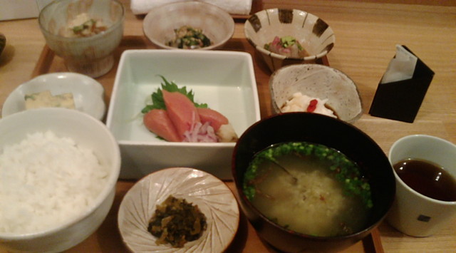 小鉢はだし巻き玉子、おひたし等があったが、最も気に入ったのはタイのゴマダレ和え。タイの身が締まっていてなかなかの美味だった。