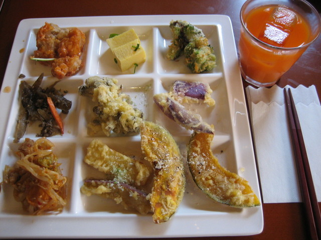 野菜メニューの充実の一方、野菜がメインにならない料理は全体的に今一つ。スパゲティミートソースは水分が多くベチャベチャしてしまっているし、天ぷらも素材の野菜は美味しいのに衣が油っこい。