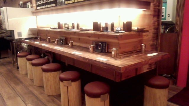 店はかなり狭い。テーブル1卓とカウンター6席。カウンター席も奥の出入りには手前側に座っている客の協力が必要。テーブル席の上に屋根裏部屋のようなテーブル席が見えたが、訪問した日は稼動していなかった。