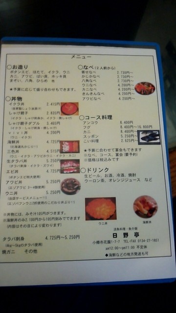 小樽駅から徒歩10分、小樽の繁華街花園町にある、活魚料理・魚介類小樽の味日野亭。