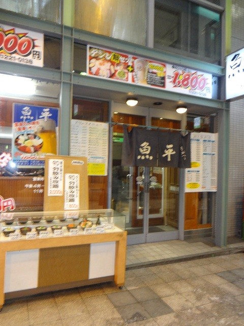 大通駅から徒歩7分、資生館小学校前電停から徒歩3分、狸小路を西進しホテルドーミーインの少し西、南2西6交差点東側にある、さかなや金ちゃんの店魚平。