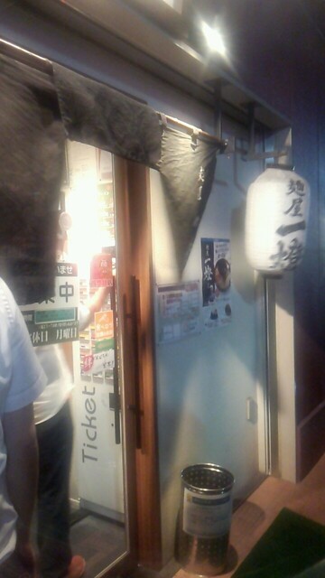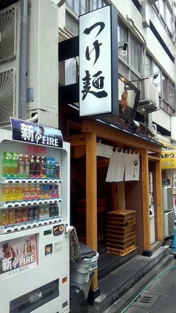 白地に黒の筆文字で「つけ麺」と書かれているのが目印。白木に白い暖簾という外観はビルが並ぶ銀座の裏通りにあって清々しい。入口横に食券の自動券売機が1台置かれている。