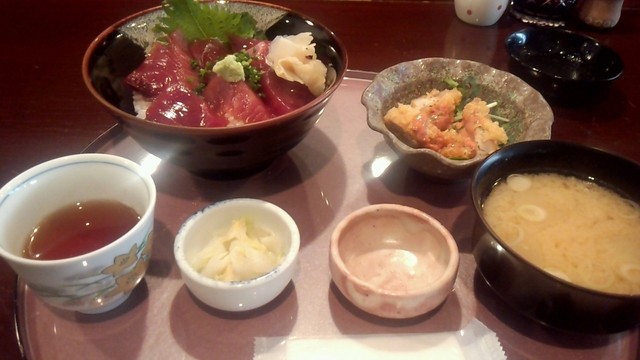 この日は「カツオ漬け丼」を注文。もう一つは「目鯛の煮付定食」だった。ご飯大盛が可能とのことで、大盛をお願いした。ちなみに、どちらも限定25食。