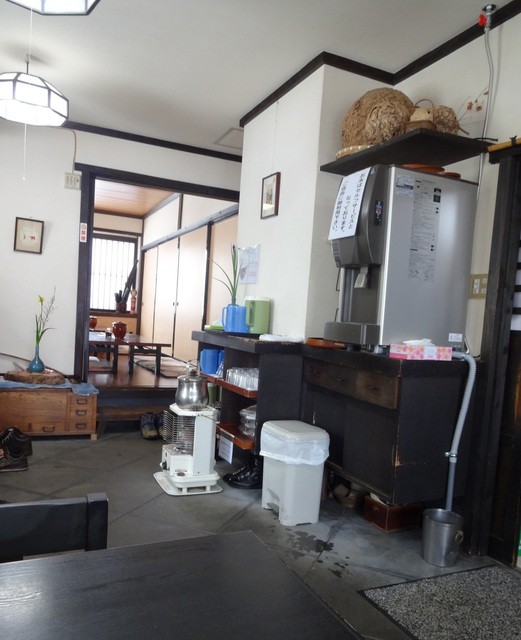 引き戸を開けて店内に入ると、手前からテーブル席、小上がり、座敷と水はセルフサービスだが、最初は店員が注いでくれる。