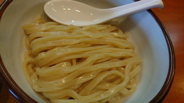 つけ汁は最近のつけ麺では主流となっている濃厚魚介豚骨なのだが、濃厚でとろみが強いのにもかかわらず妙な甘ったるさはなく、しかも後味がしつこくない。煮干の風味を感じるものの煮干の苦味や臭みは感じず、動物系のパンチをほどほどに感じながらも魚介風味とのバランスが良く、これに醤油ダレが加わりまろやかさもしっかり感じることができる。