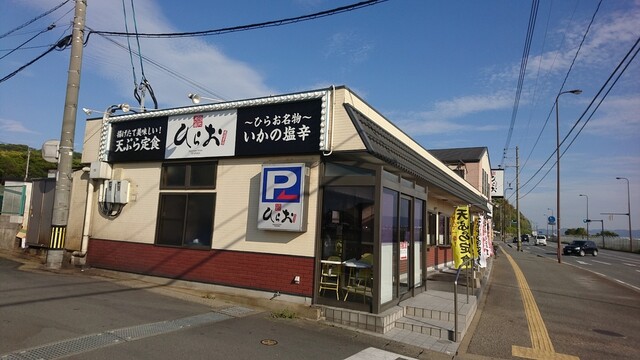福岡空港から車で5分、福岡空港国内線正面から大野城方面に向かい東平尾公園入口を過ぎて程ない所にある天麩羅処ひらお。