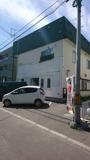 アパートの1階にある店で、この店付近は民家や団地が多い中この店がポツンとある状態。しかも白い壁に小さな窓、大きいとは言えない扉、その扉の脇に控えめに設けられた看板と、遠目からではここに店、しかも人気店があるとは思えないほど。店の前には駐車スペースが設けられている。