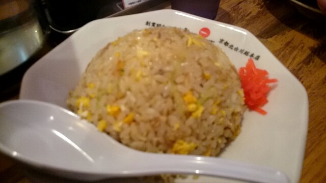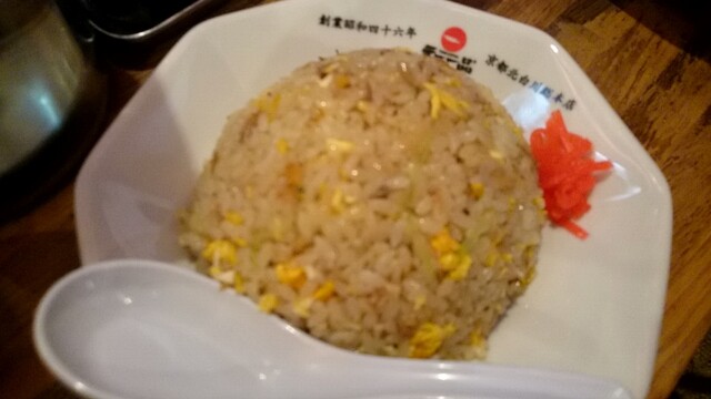 素朴な味付けながら、改めて味わってみるとなかなか。チャーハンの味はあまり濃くないので、こってりラーメンを食べながらこのチャーハンを食べる分には違和感がないが、チャーハン単品で食べる際は添えられた紅ショウガが調味料的な役目になる。