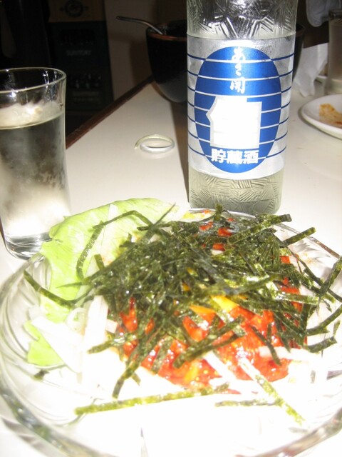 更に、冷麺、焼肉と並んで店の売りとなっていた「ユッケ」(1,400円)を追加注文。「あさ開」の生酒を片手にユッケを食すが、肉の甘みがストレートに伝わってくる。
